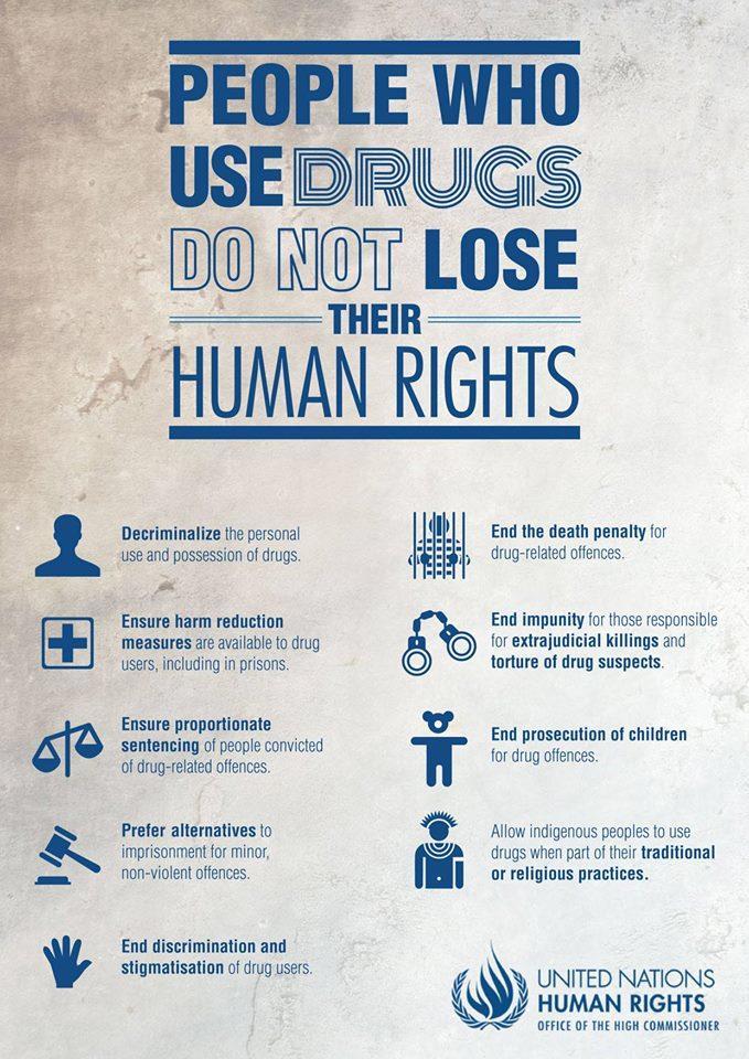 Η ποινικοποίηση της κατοχής και χρήσης ναρκωτικών προκαλεί σημαντικές απειλές για το δικαίωμα στην υγεία, καθώς οι χρήστες μπορεί να αποφύγουν την ιατρική τους περίθαλψη ή την αναζήτηση πρακτικών ασφαλούς χρήσης ναρκωτικών, φοβούμενοι τη σύλληψη και φυλάκιση τους.
